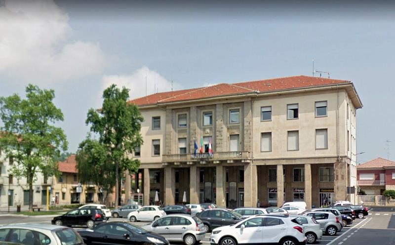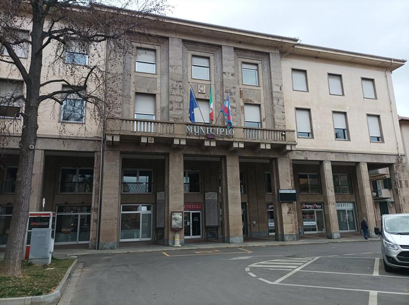 Nel luogo dove sorge il Municipio c’era fino al 1932 un filatoio. La modesta costruzione è di epoca fascista, ma custodisce i preziosi frammenti di un codice della Divina Commedia risalenti agli anni Trenta del Trecento