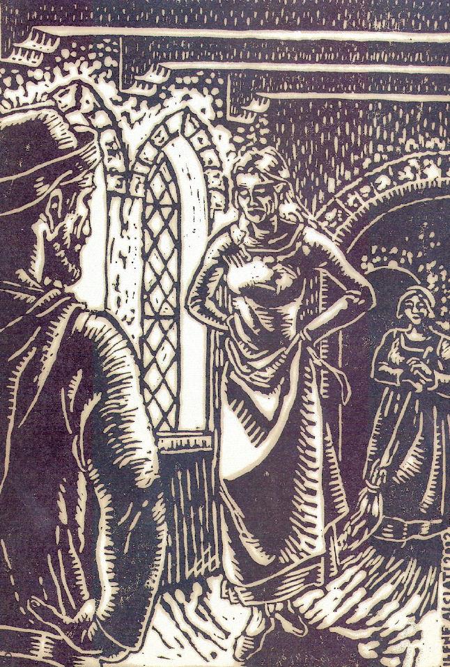 La fanciulla col fratello e con nobile compagnia, in su l'ora del desinare, giunse a Saluzzo, dove tutti i paesani e molti altri vicini da torno trovò, che attendevan questa novella sposa di Gualtieri. La quale dalle donne ricevuta e nella sala dove erano messe le tavole venuta, Griselda, così come era, le si fece lietamente incontro, dicendo: '' Ben venga la mia donna!''.