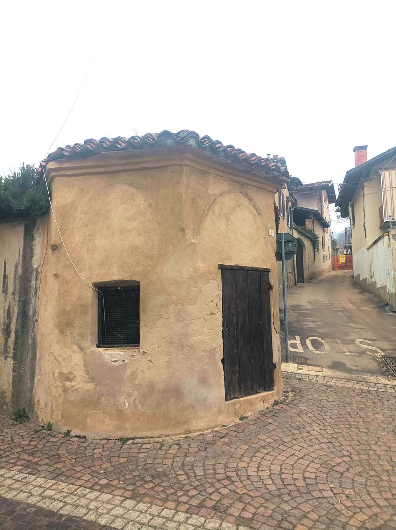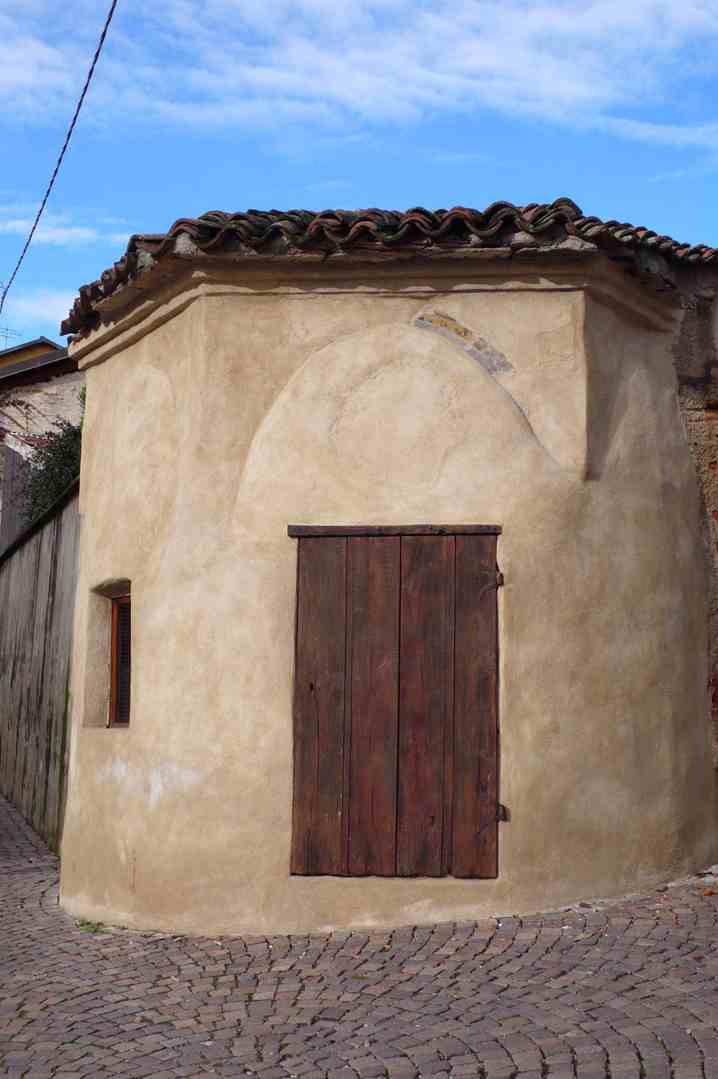 Di fronte alla Confraternita, inglobata nel muro di cinta sull’angolo di via Castello, sorge la cappella di San Rocco edificata nel 1531 come ex voto per la liberazione dal flagello della peste. Affrescata da un pittore locale, Rolando Canale, con una decorazione a grottesche, fu poi restaurata nel 1632 in seguito a una seconda epidemia. L'impianto a padiglione aperto, come si nota nella tavola del Theatrum Sabaudiae del 1666, fu poi modificato con il tamponamento degli archi. La struttura della cappella è di forma ettagonale coperta da una volta “ad ombrello”, sorretta nei tre vertici verso la strada da pilastrini in cotto, mentre gli altri lati sono sostenuti da una muratura continua in mattoni. Nel 2014 la cappella è stata fatta oggetto di restauro attraverso operazioni di consolidamento.