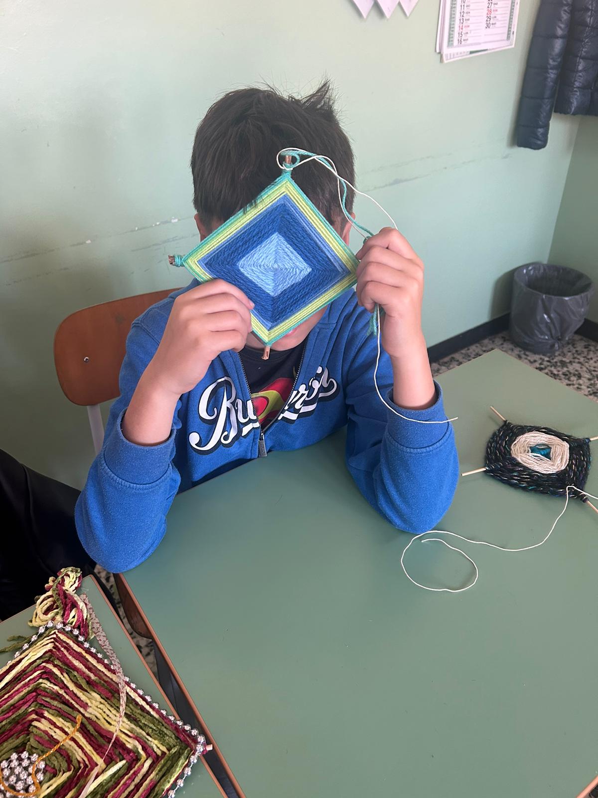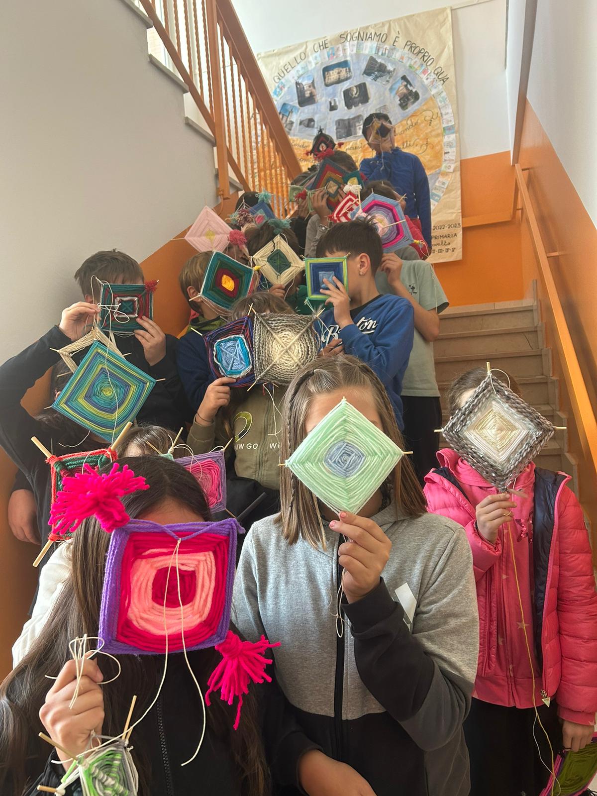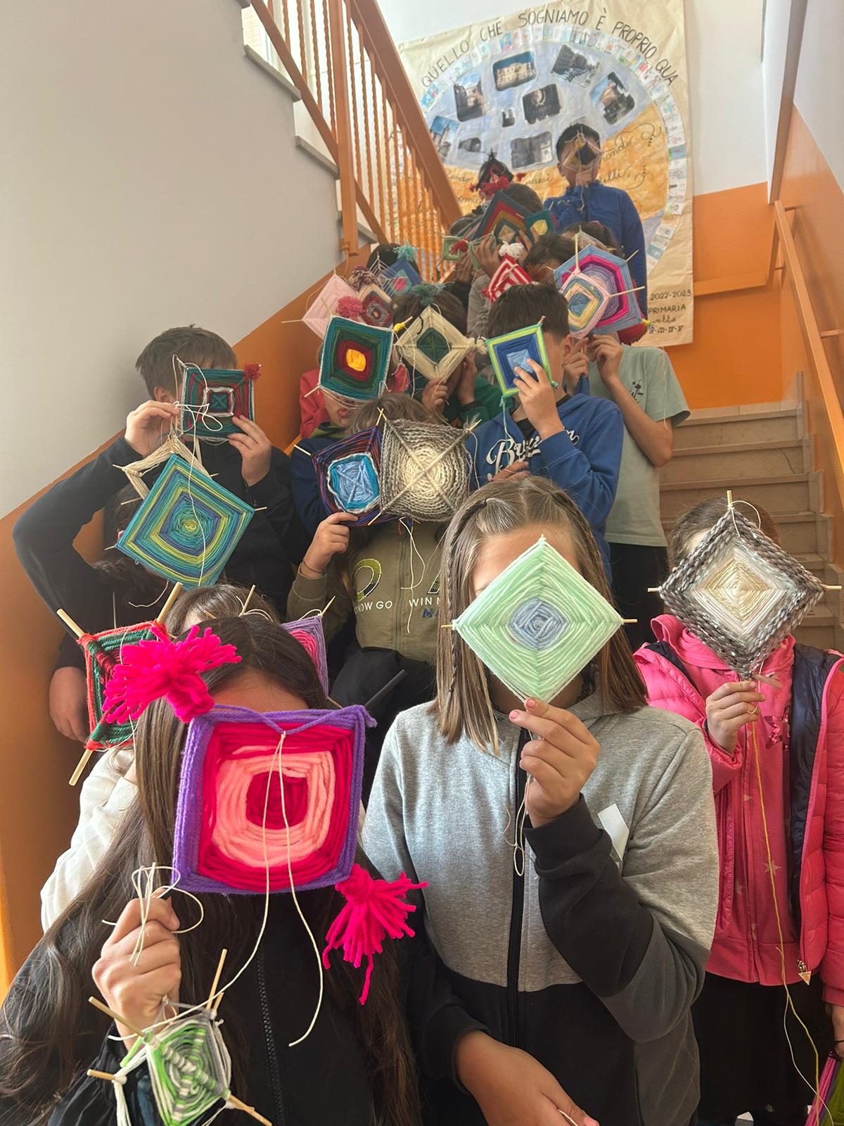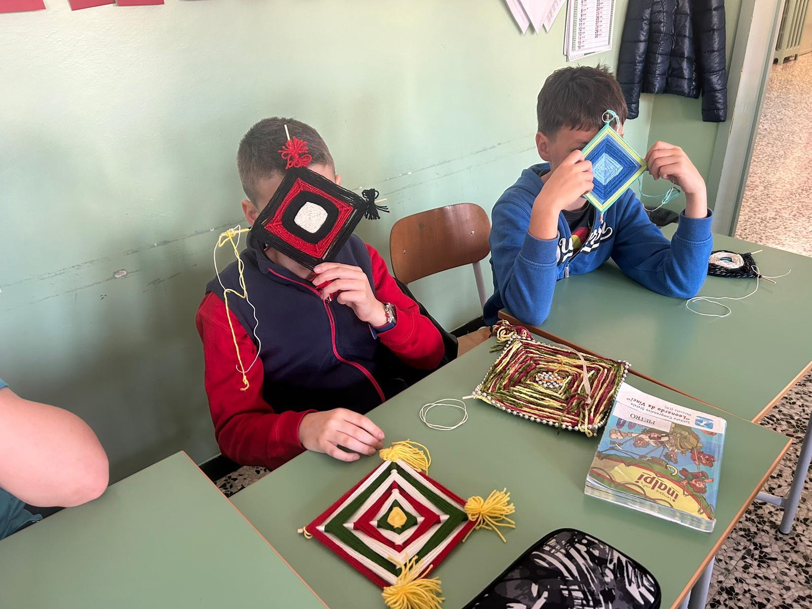 Gli alunni hanno realizzato dei mandala, con fili in lana o altri tessuti; un’attività che ha coinvolto anche molte famiglie, contribuendo a rafforzare il senso di identità e la consapevolezza di far parte di un gruppo, a vari livelli (classe, scuola, frazione, comune).