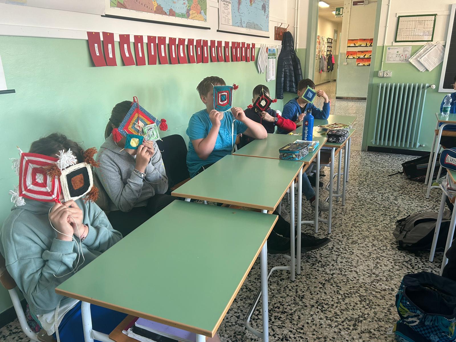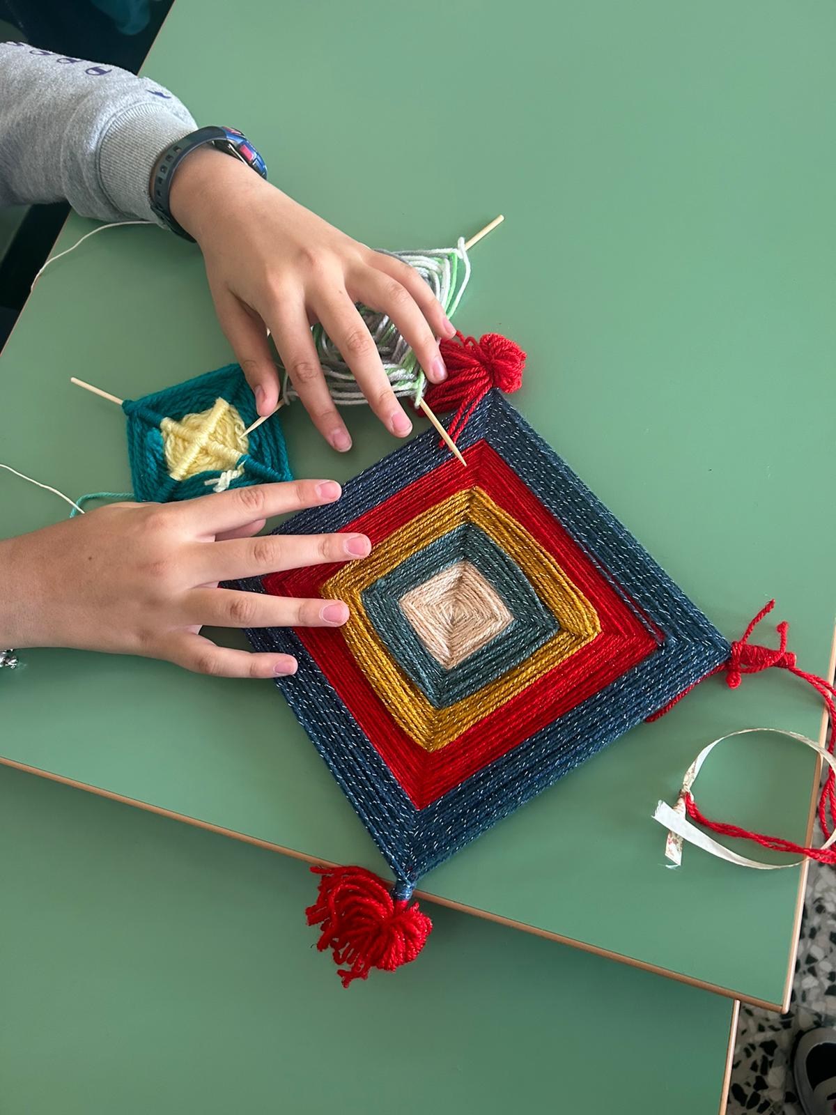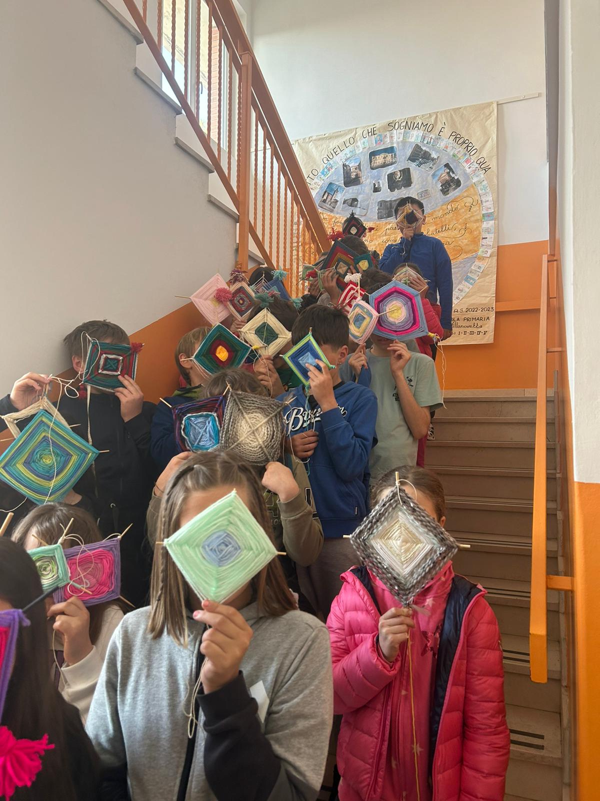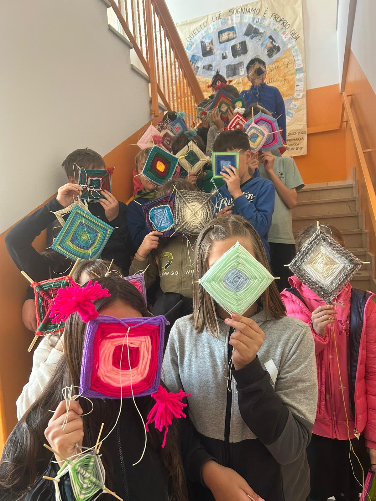 Gli alunni hanno realizzato dei mandala, con fili in lana o altri tessuti; un’attività che ha coinvolto anche molte famiglie, contribuendo a rafforzare il senso di identità e la consapevolezza di far parte di un gruppo, a vari livelli (classe, scuola, frazione, comune).