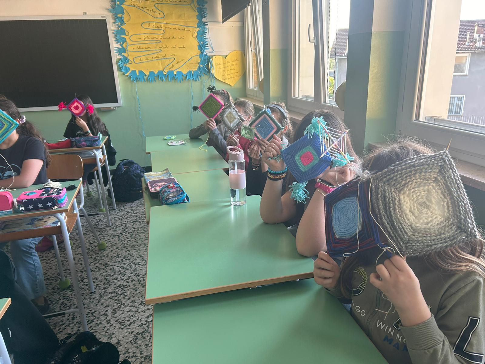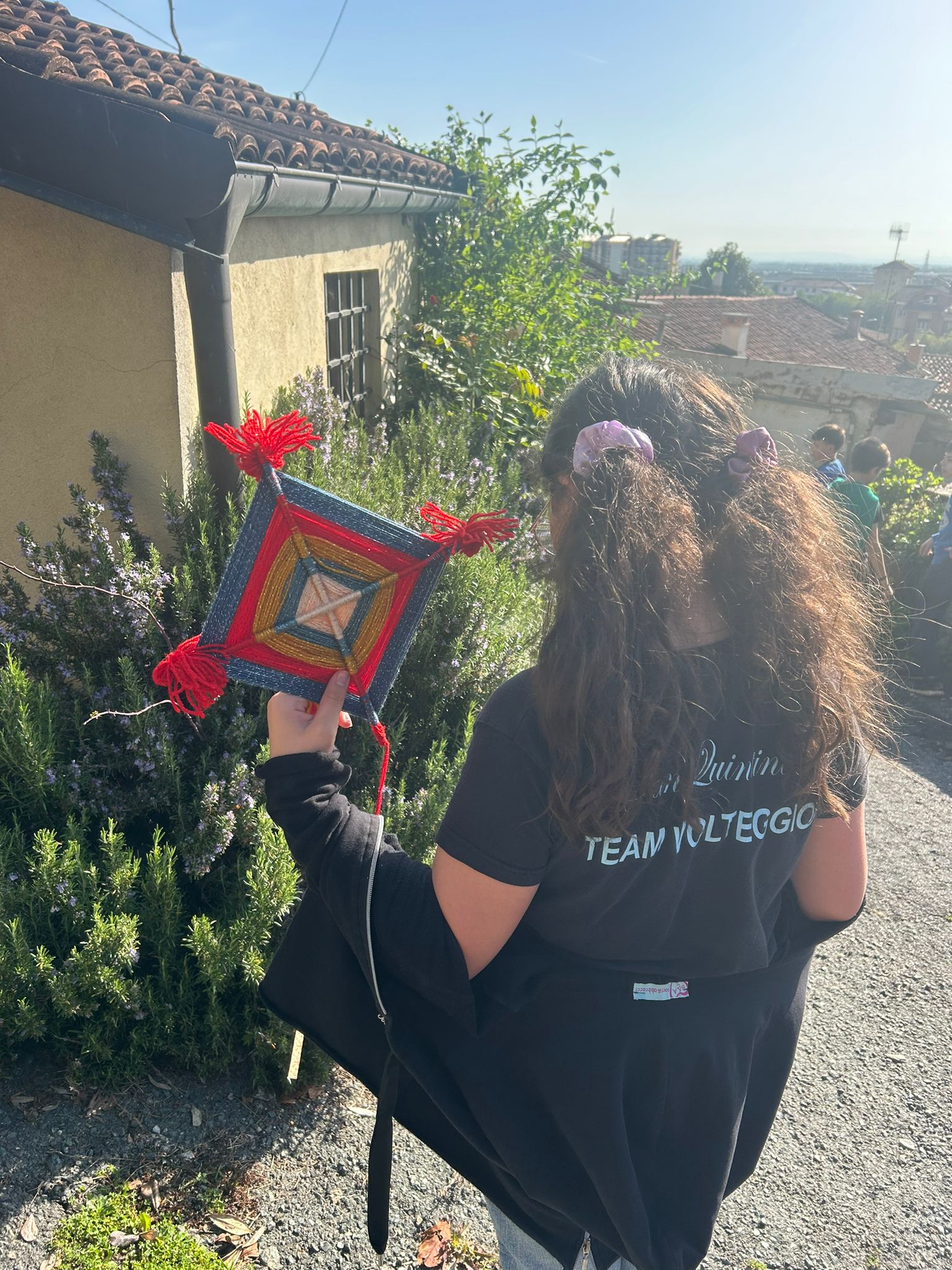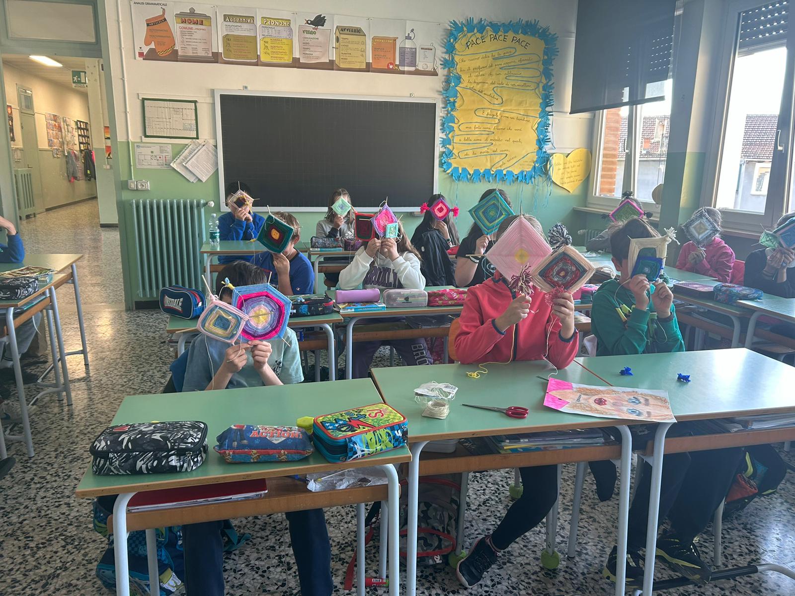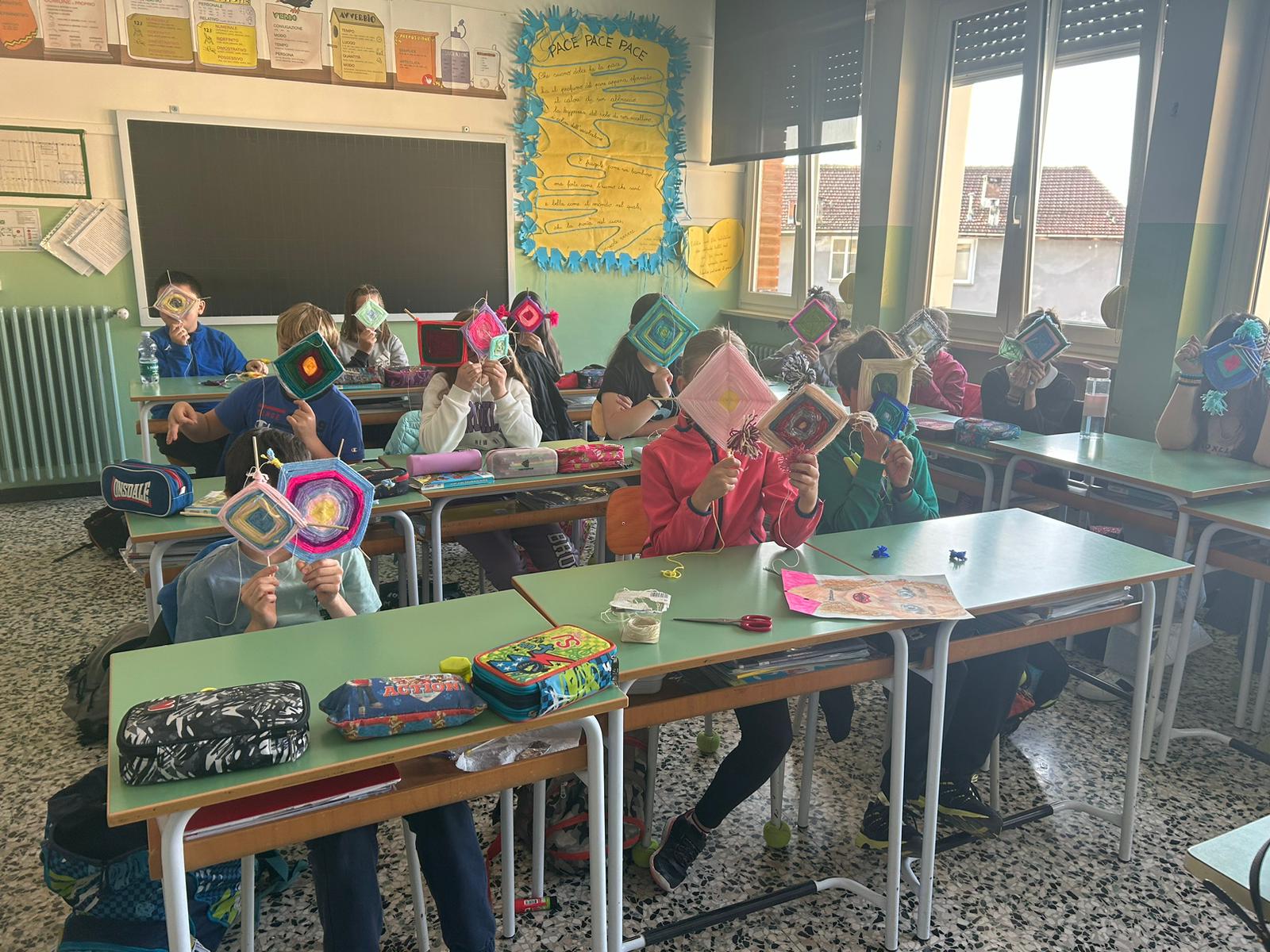 Gli alunni hanno realizzato dei mandala, con fili in lana o altri tessuti; un’attività che ha coinvolto anche molte famiglie, contribuendo a rafforzare il senso di identità e la consapevolezza di far parte di un gruppo, a vari livelli (classe, scuola, frazione, comune).