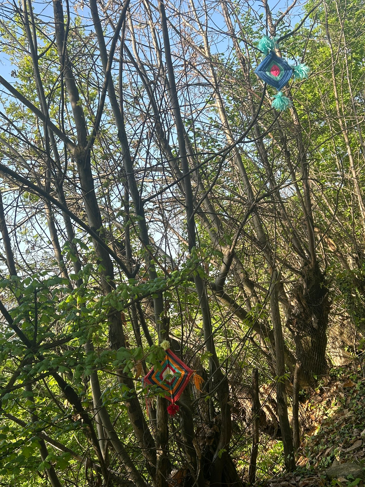 I mandala sono stati poi collocati lungo un sentiero, in collina, che si trova nel bosco, in prossimità della scuola, e conduce alla cappella di San Rocco, chiamata anche cappella di San Bernardino.