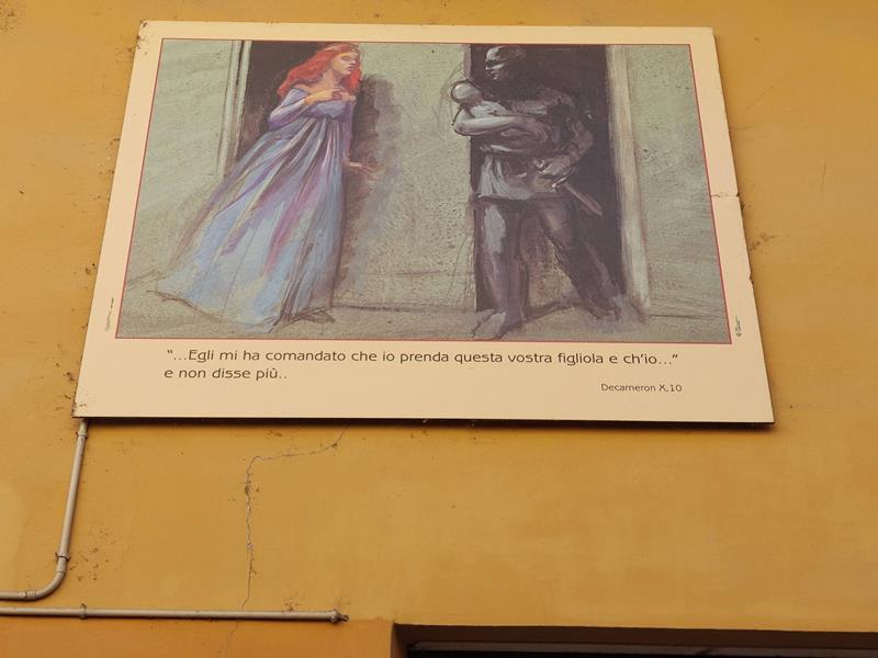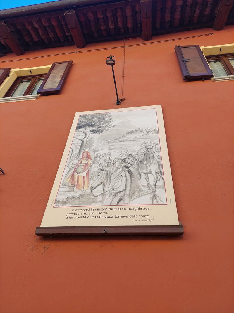 Il tragitto inizia in Piazza Schiffer, all’ingresso della deliziosa frazione di Villanovetta; questa piazza è stata dedicata alla figura di Alessandro Schiffer, dipendente delle cartiere Burgo, che morì nel campo di sterminio di Auschwitz durante la Seconda Guerra Mondiale. Qui è visibile il primo quadro dedicato alla “Leggenda di Griselda”, dolce fanciulla che alcuni storici dicono nativa proprio di Villanovetta, e la cui storia si narra nella decima ed ultima giornata del "Decameron” di Boccaccio.
