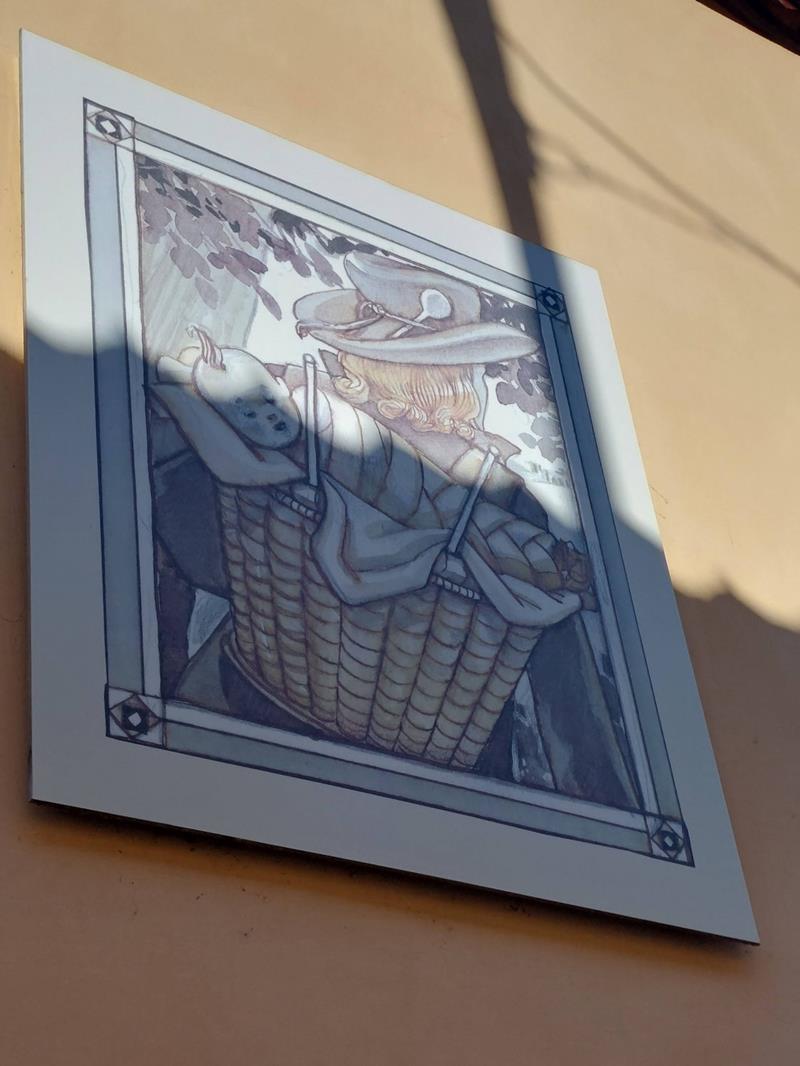 Il primo quadro si trova appeso sui muri dell’ex Filanda, la cui attività venne bruscamente interrotta nel 1905 a causa di un furioso incendio e divenuta in seguito sede di numerosi alloggi per gli operai della cartiera Burgo.