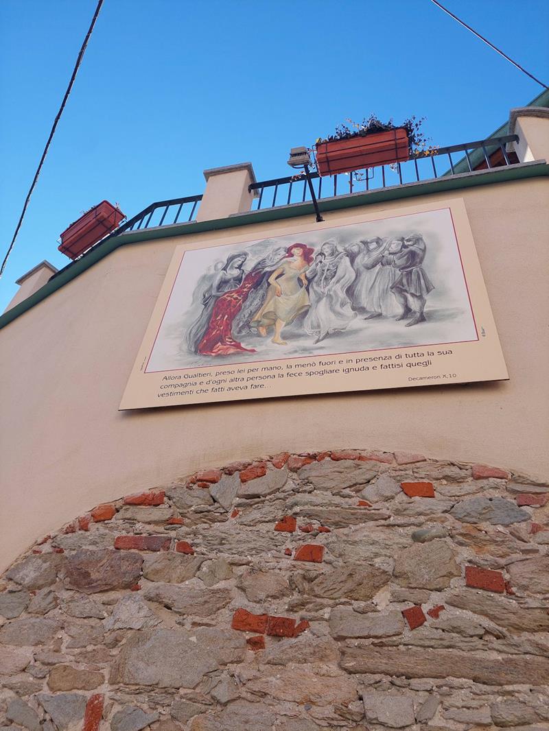 Il percorso prosegue verso via Griselda, inoltrandosi nella zona più storica della frazione, dov’è possibile ammirare i successivi pannelli che illustrano l’intera novella, le vicissitudini e l’amore tra Griselda ed il marchese di Saluzzo. Durante questa passeggiata sono visibili, in ordine, la chiesa parrocchiale intitolata a San Andrea, il limitrofo oratorio Carlo Acutis, l’ala pubblica e l’ex casa comunale, sede un tempo delle scuole elementari, dell’ufficio postale e del telegrafo.