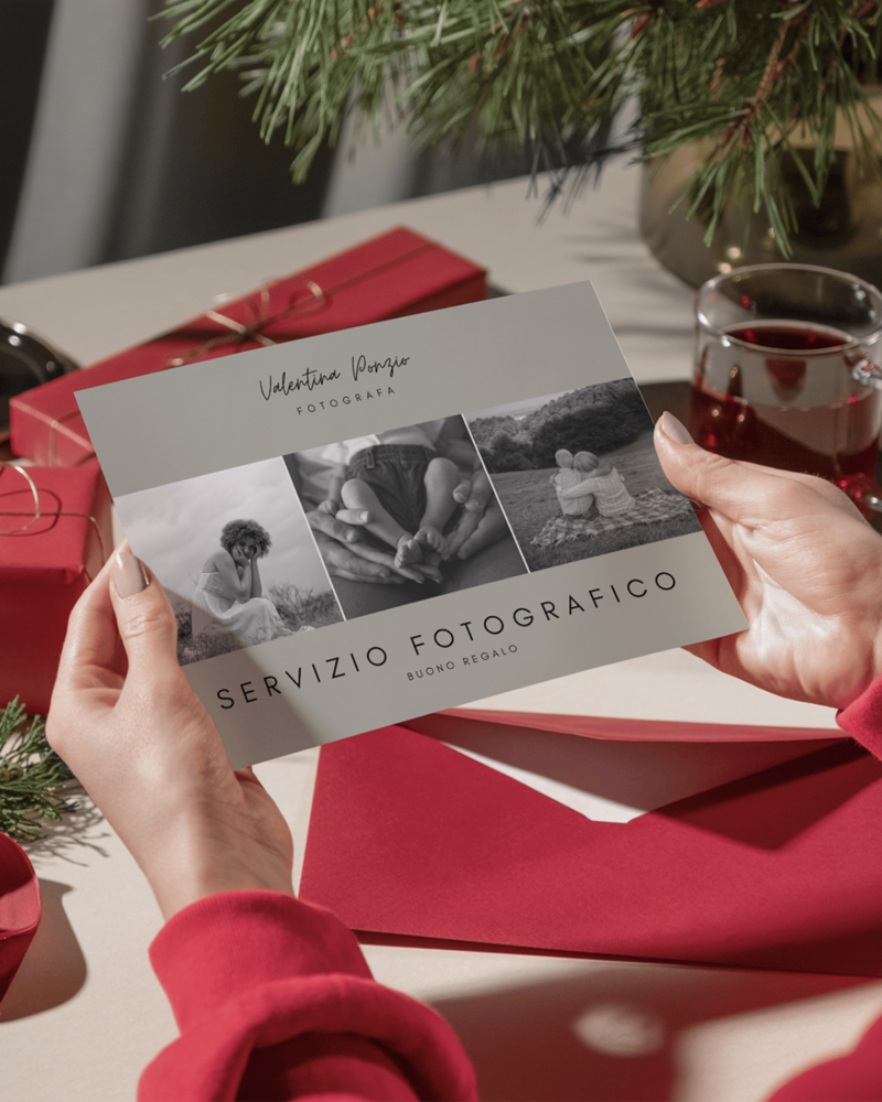 Regala emozioni che durano per sempre con un buono regalo per un servizio fotografico. Che si tratti di un ritratto individuale, un servizio di coppia, di famiglia o per un’occasione speciale, i miei buoni regalo sono un pensiero originale e unico, perfetto per chi ama i ricordi autentici.